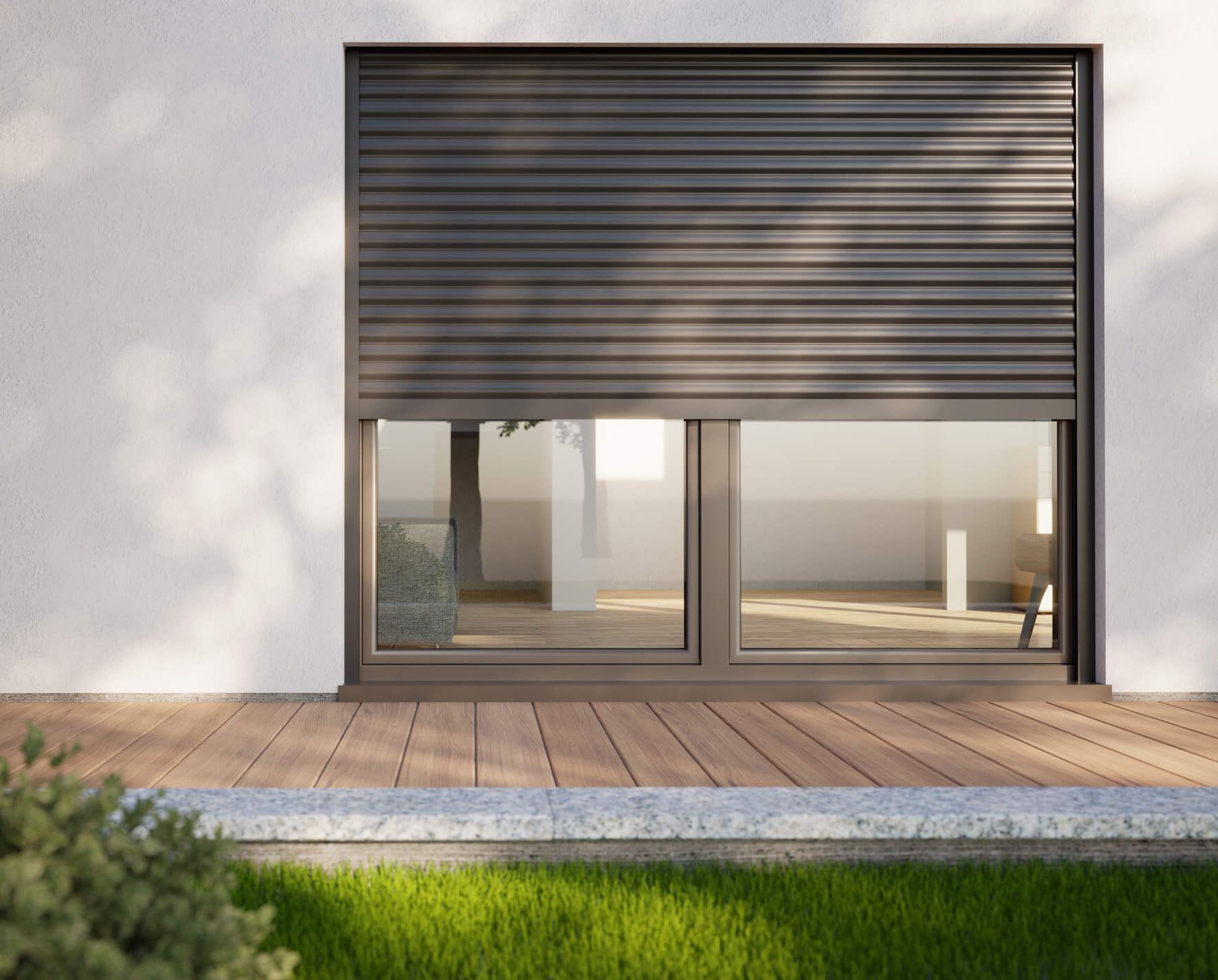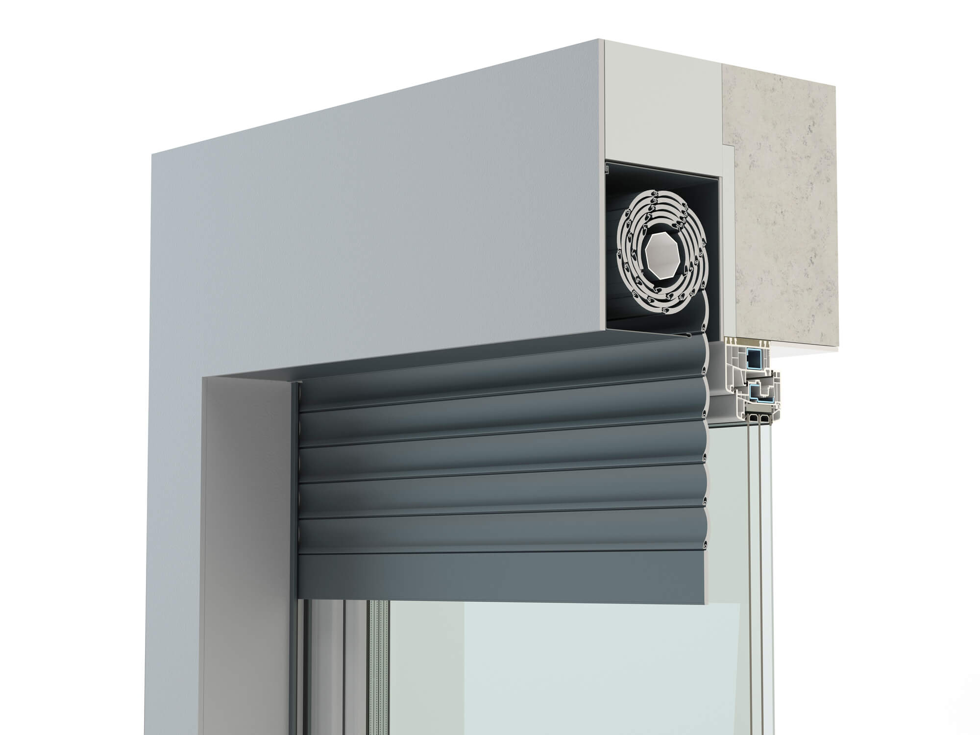 Bei Einbau-Rollläden wird der Rollladenkasten oberhalb des Fensters montiert und wird dadurch quasi unsichtbar.